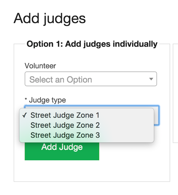 The Event director can configure a number of judge users for each of 3 different "zones". Each judge will be able to enter results