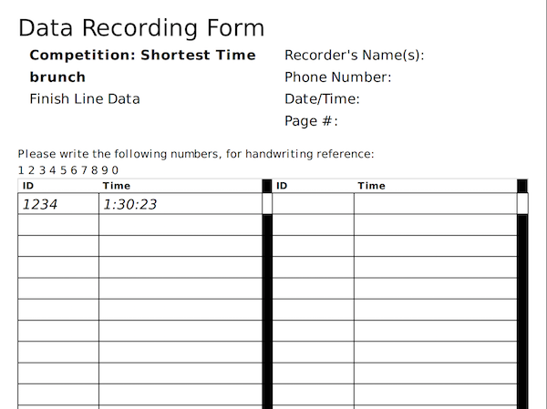 Print a paper recording form for the finish line