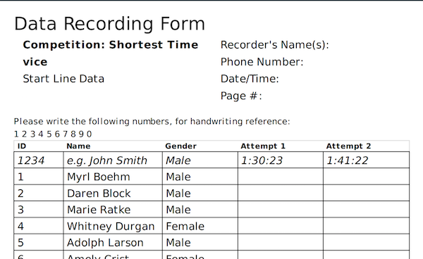 Print a paper recording form for the start line